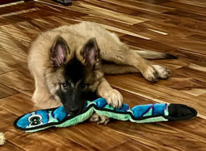 Essie had good early success in the conformation ring with both majors earned in March 2025, and she shows excellent potential in herding. She has earned her Rally Novice title and is training in scent work as well. |